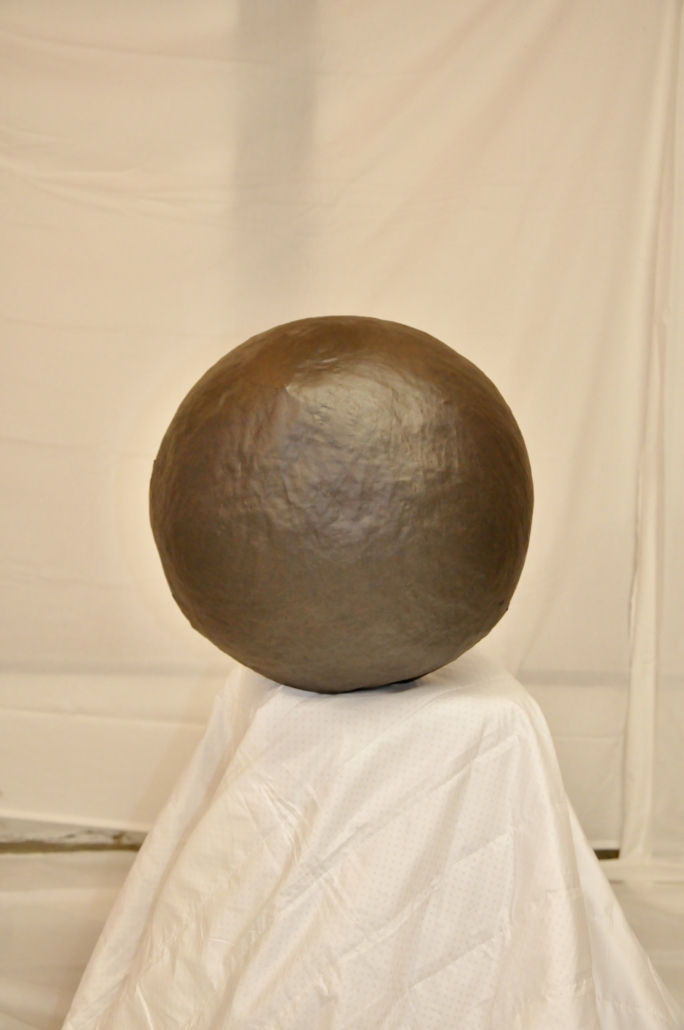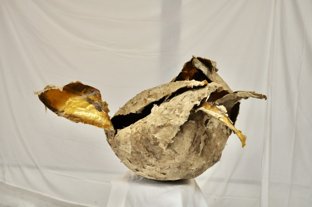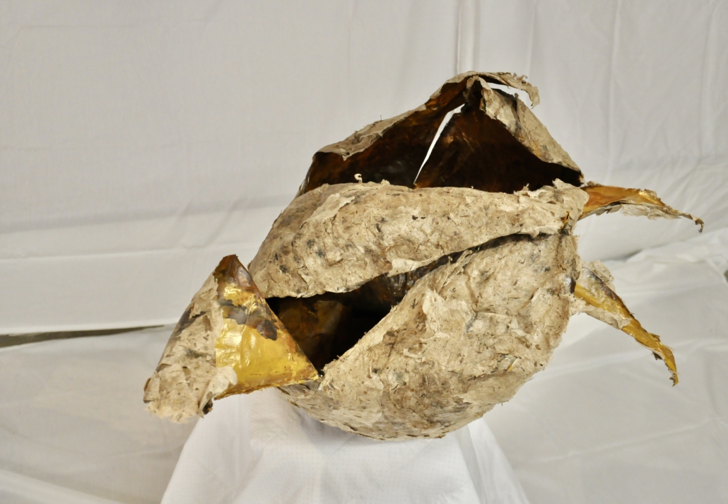 "Time fading" sculpture in papier mache, paper from mulberry tree, acrylic. L: 90 cm, w: 85 cm.