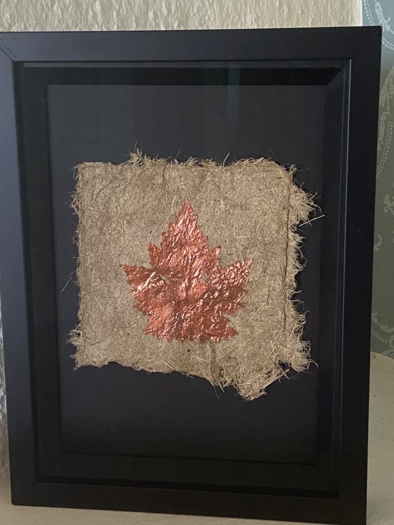 "Maple leaf" maple leaf on paper made from grass. L: 36 cm, w: 26 cm, d: 4 cm.