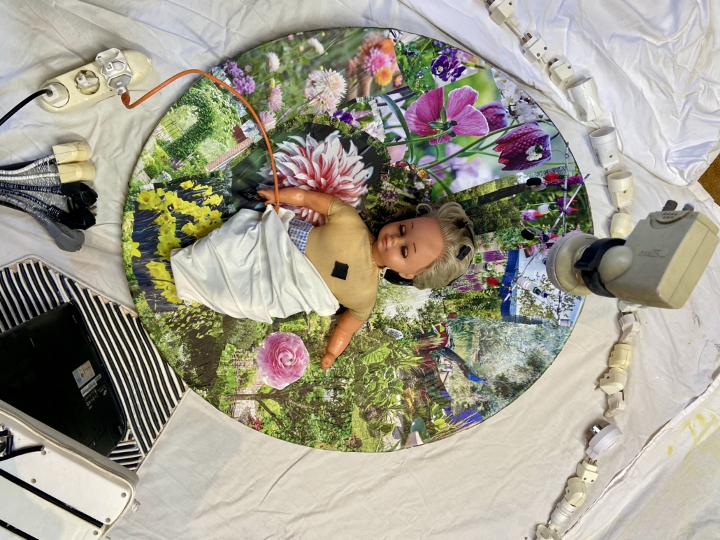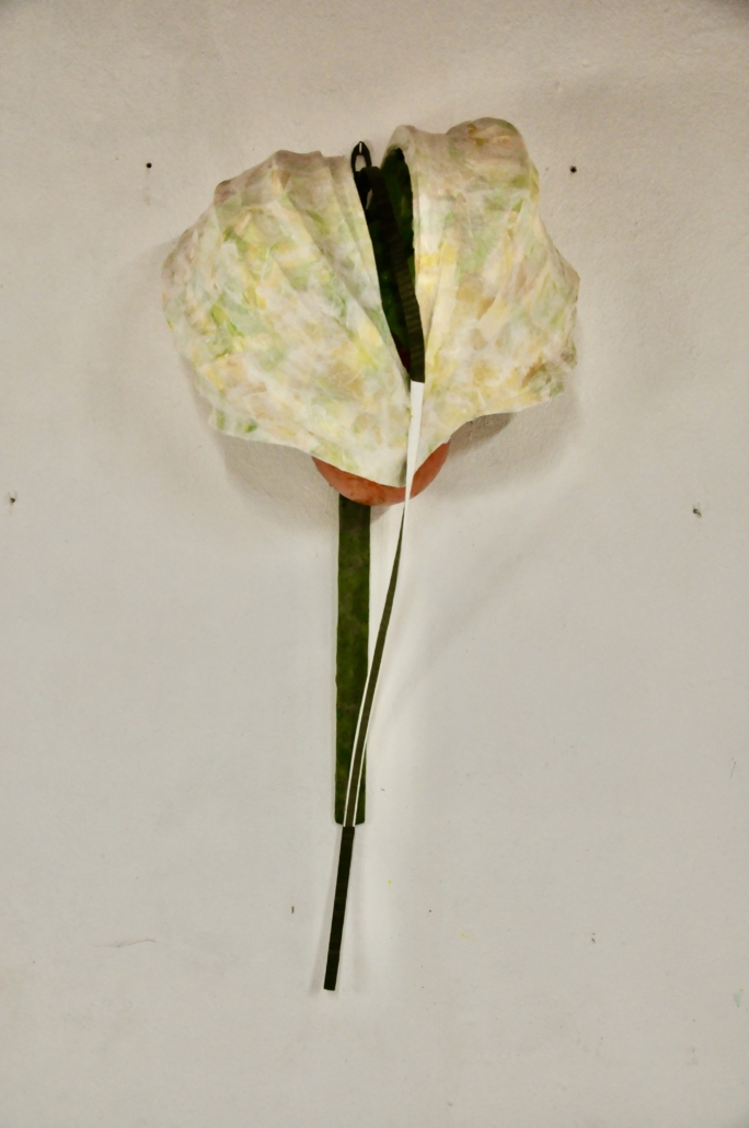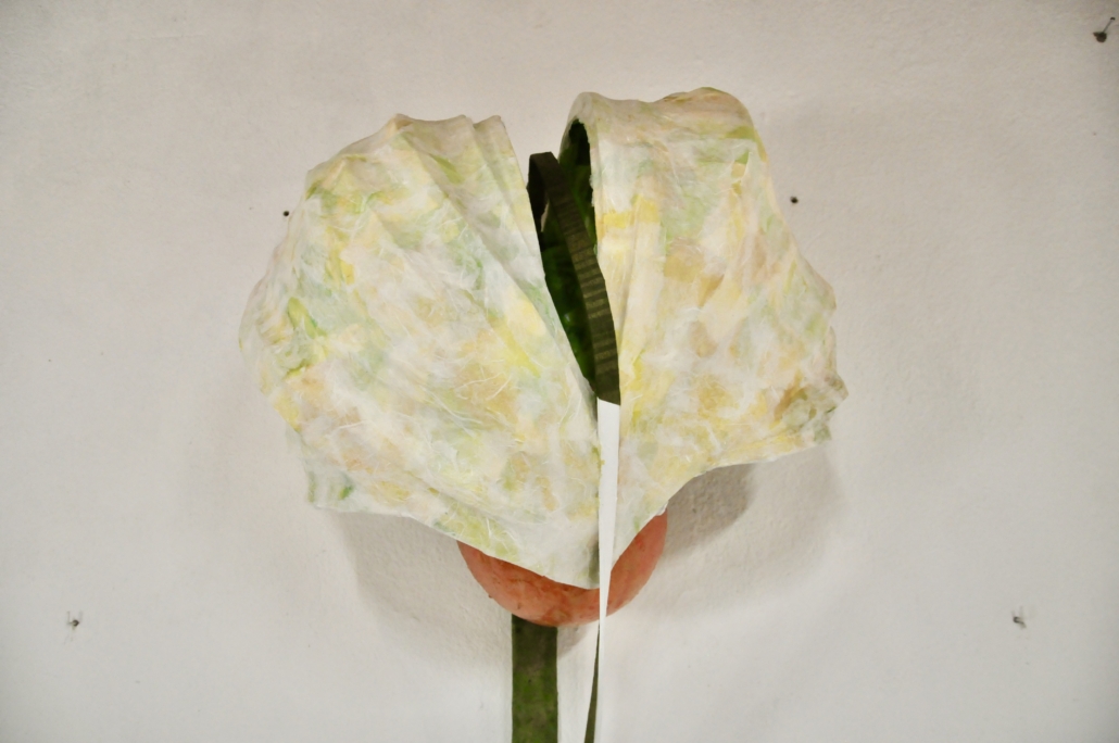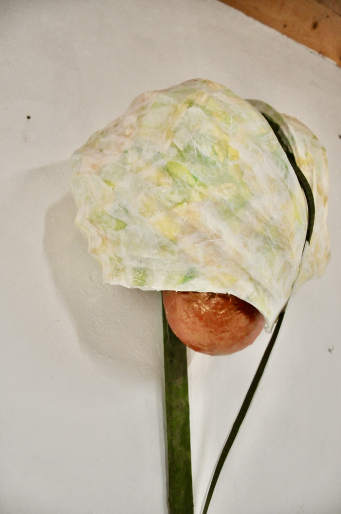 "Time fading" sculpture in papier mache, paper from mulberry tree, acrylic. L: 90 cm, w: 85 cm.