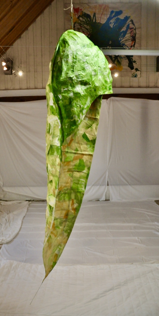 "Nature's start" sculpture in papier-mâché, ricepaper, rattan, wood and hemp- L: 200 cm, w: 117 cm.