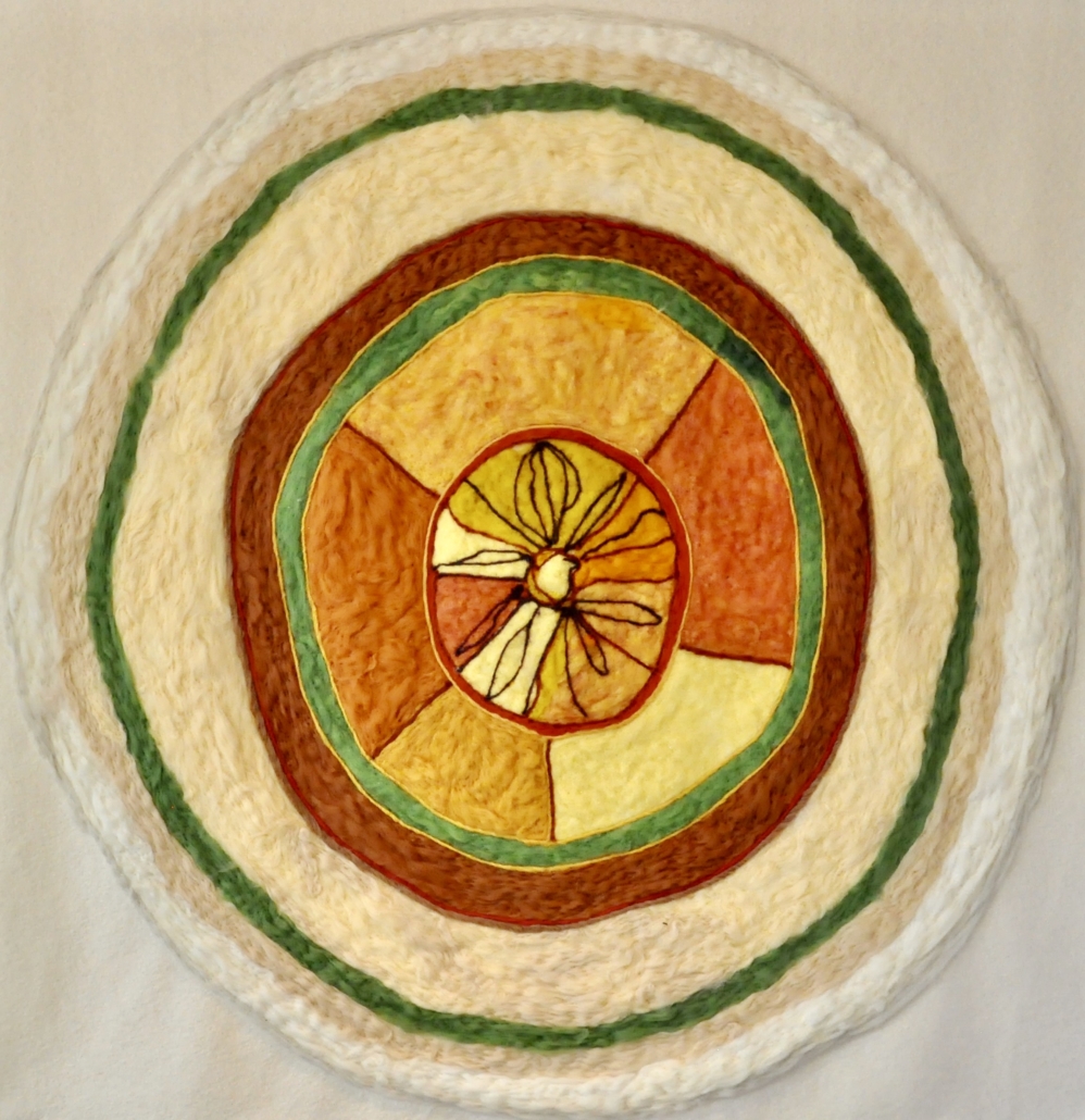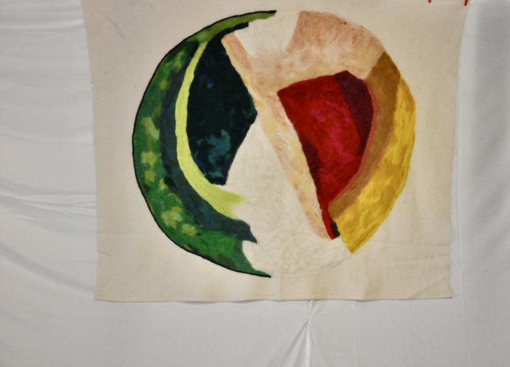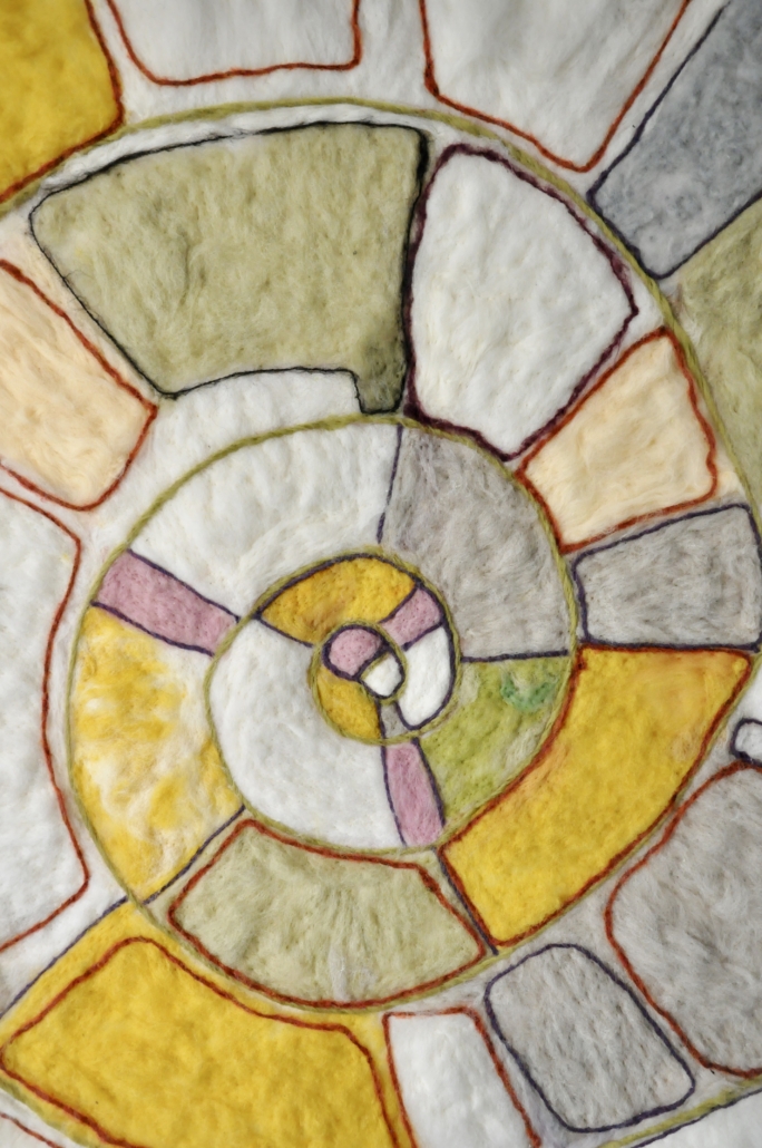 "Circle". Needle filted wool on wool fabric. H: 180 cm, w: 160 cm.