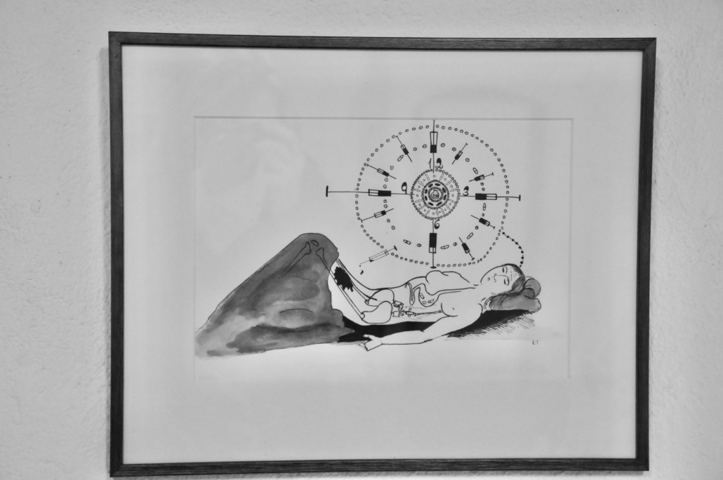 "Bodyquake # 4 ". Ink on paper. H: 34 cm, w: 42 cm.