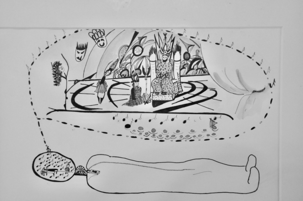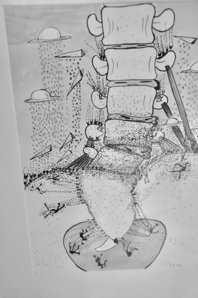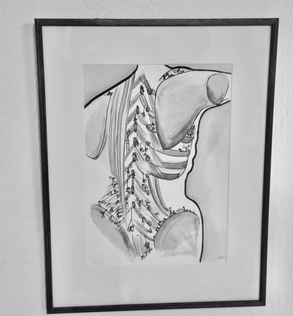 "Bodyquake # 1". Ink on paper. H: 34 cm, w: 42 cm.