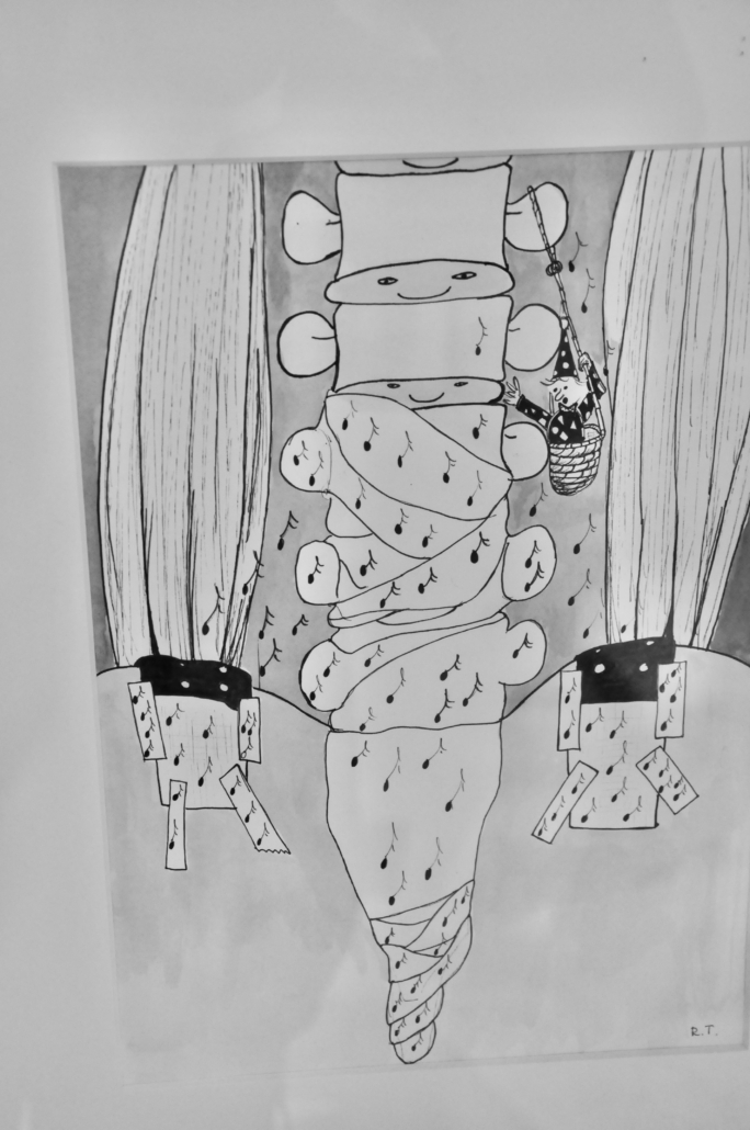 "Bodyquake # " ink on paper. H: 34 cm, w: 42 cm.