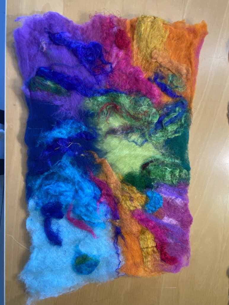 "Multicolor" wetfelted wool. L: 25 cm, w: 25 cm.