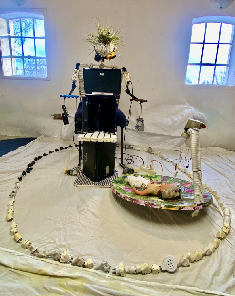 "Electrically entangled" installation made from metal and electrical waste. H: 150 cm, w: 200 cm.