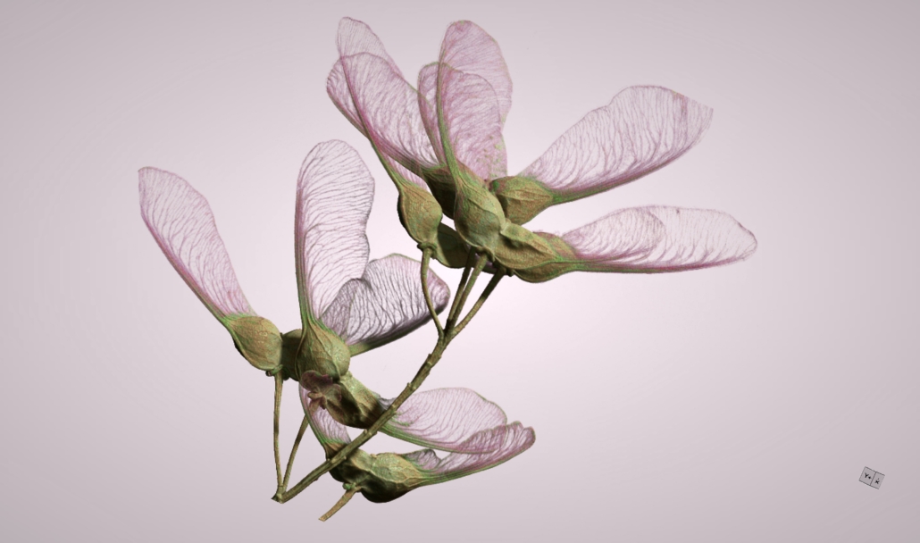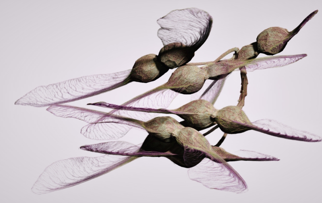 "Nature's Universe # 17". CT scan of seeds of maple tree. In collaboration with Ola Gustafsson Biology Dept., Lunds university, Sweden. H. 33 cm, w: 42 cm.