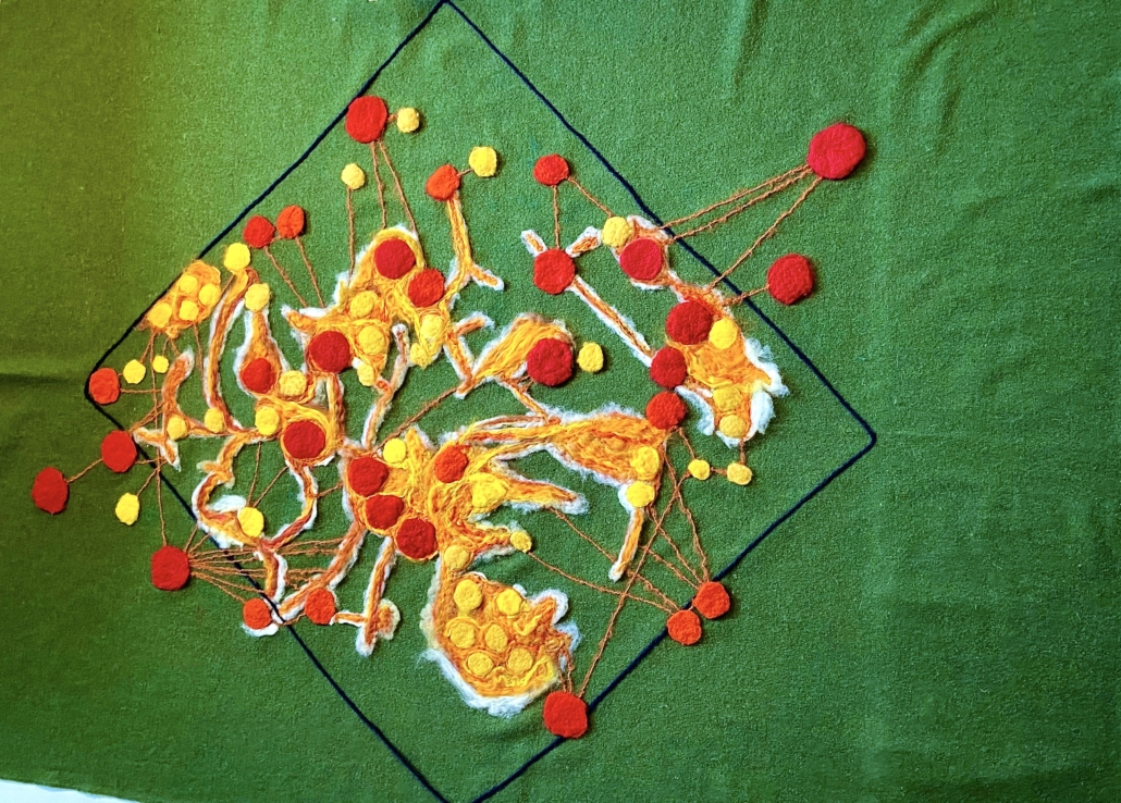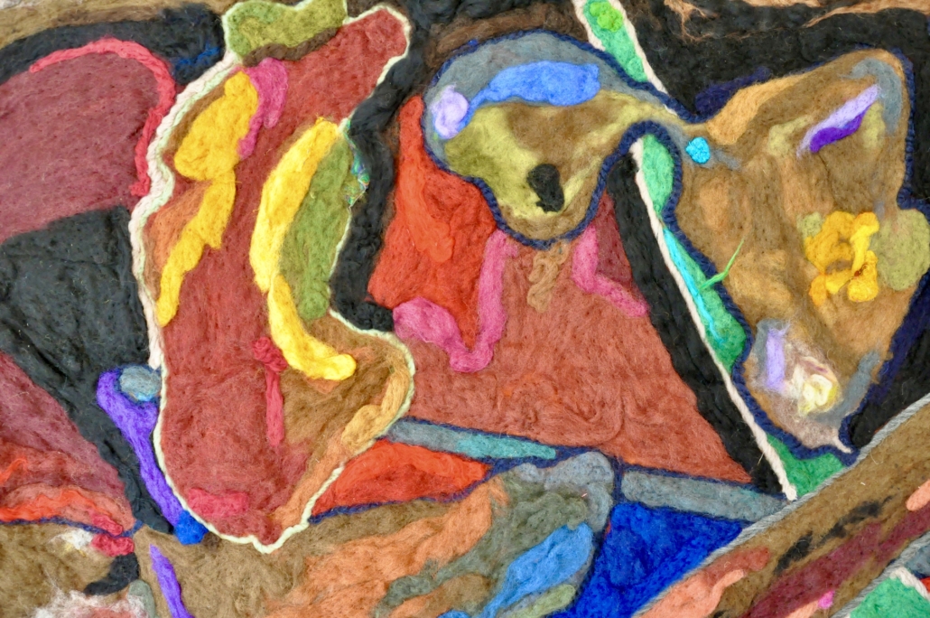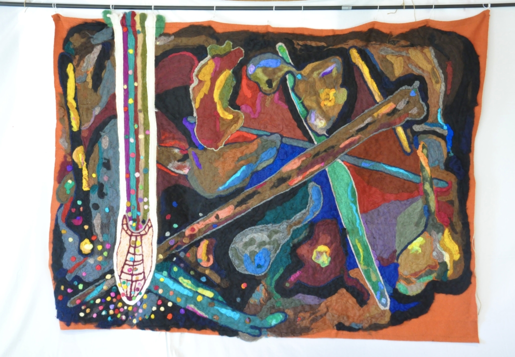 A seeking root Dry needled wool collage on wool fabric. L: 220 cm x 200 cm.