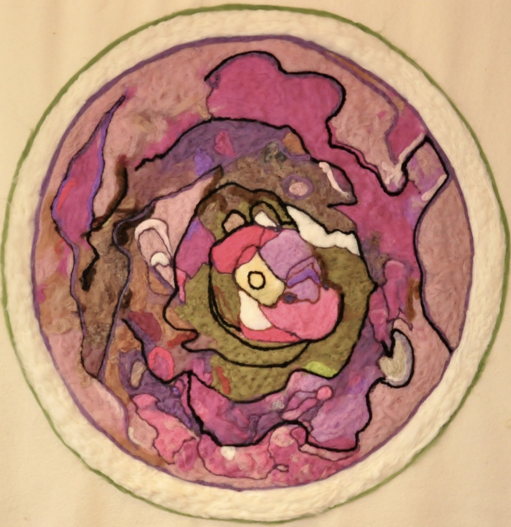 "Cell Meditation" Needle felted wool on wool fabric. L: 140 cm x w: 140 cm.