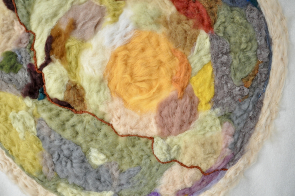 Detail of" Forest Cell # 1". Dry felted wool on wool fabric. L:. 1,40 m, w: 1,40 m.