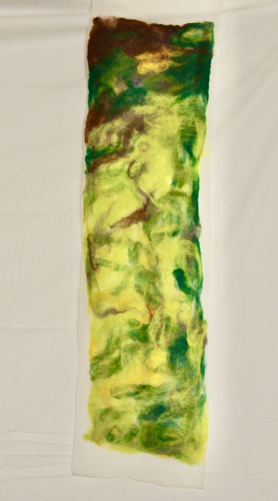 "Forest Cell # 2." Dry felted wool on wool fabric. L: !40 cm x 140 cm.